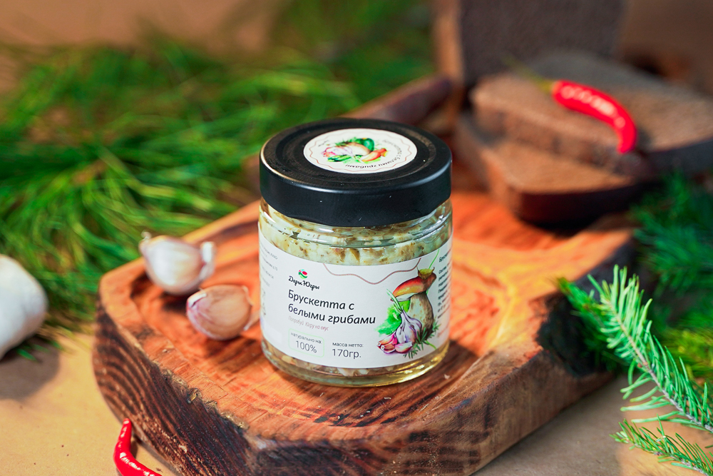 Брускетта с боровыми белыми грибами от компании "Дары Югры". Место сбора дикоросов Ханты-Мансийский автономный округ - Югра.