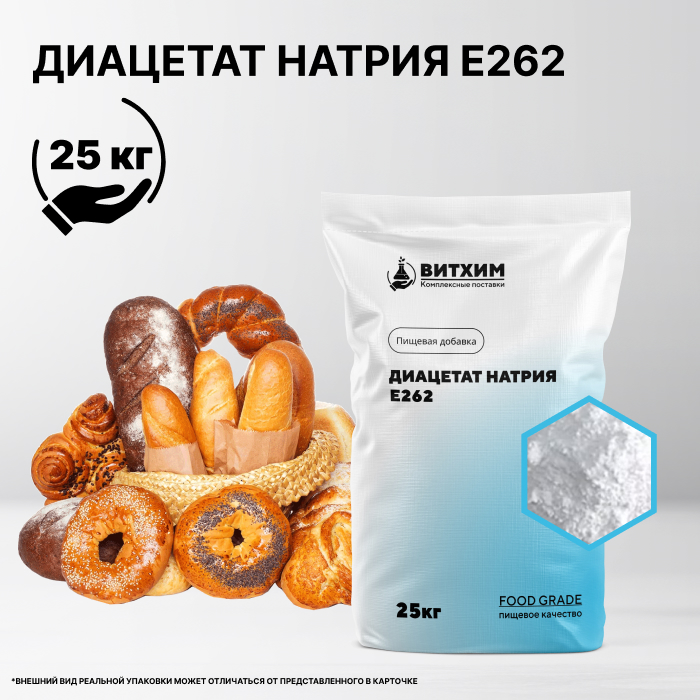Диацетат натрия применяют в качестве буферного вещества, консерванта, ароматизатора, желирующего агента. Добавка незаменима для регуляции кислотной среды, стабилизации и увеличения срока годности продуктов за счет подавления размножения патогенной флоры. Помогает сохранить текстуру и форму продуктов, улучшает консистенцию технического сырья и органолептические характеристики.