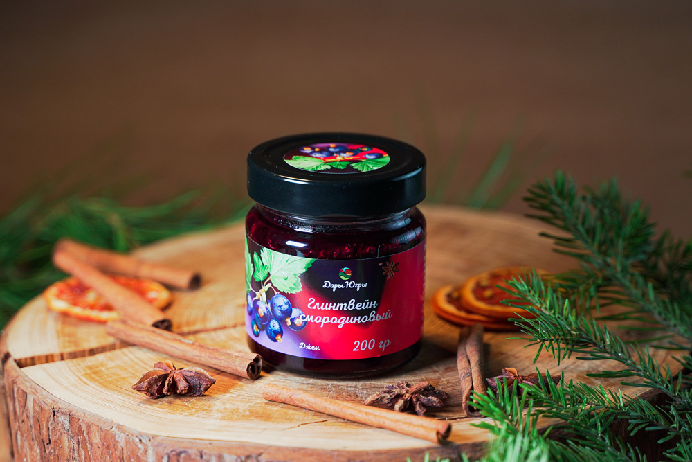 Глинтвейн смородиновый от компании "Дары Югры". Место сбора дикоросов Ханты-Мансийский автономный округ - Югра. Состав: смородина лесная, бадьян, гвоздика, кардамон, корица, пектин яблочный, сахар.