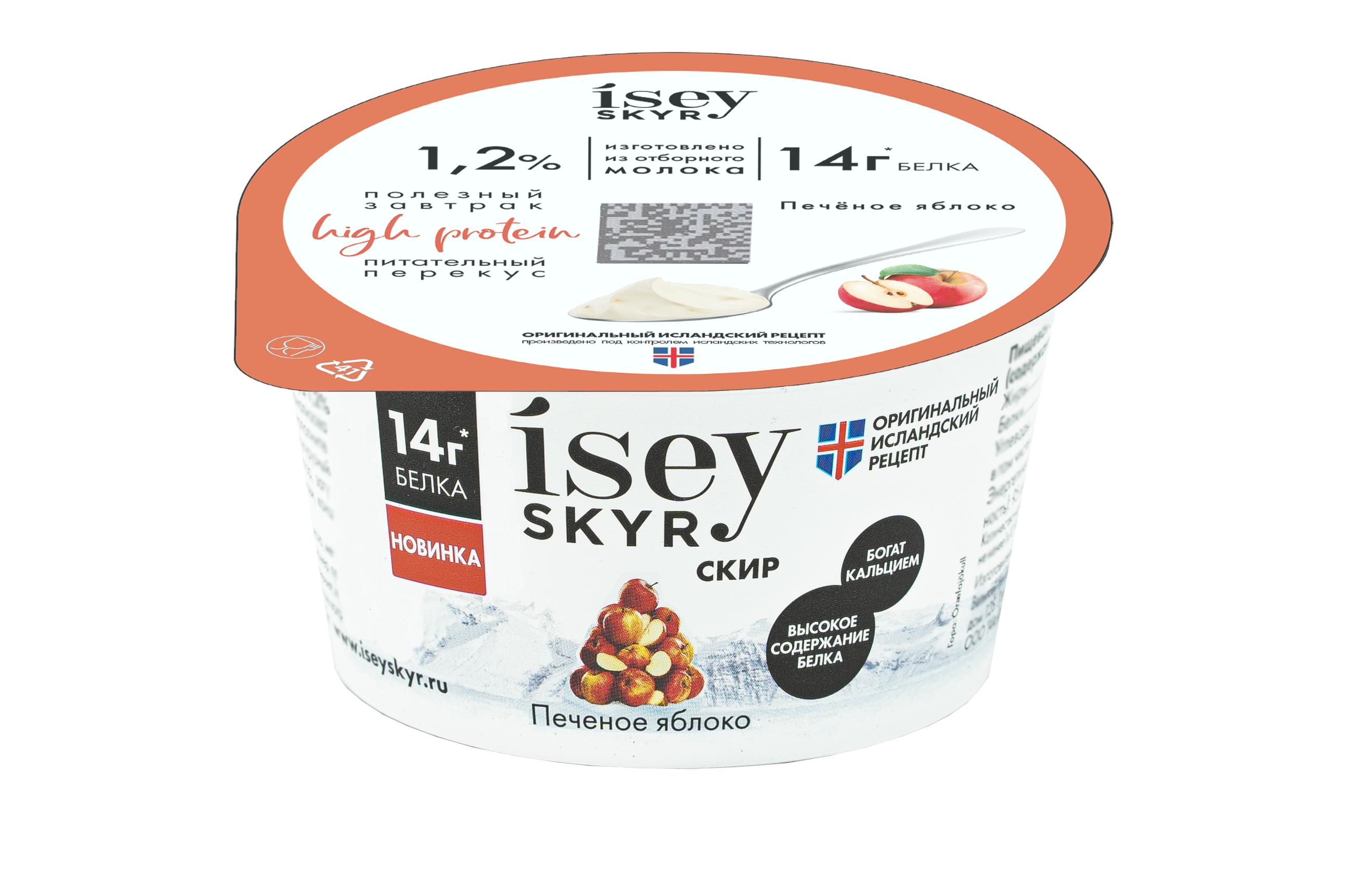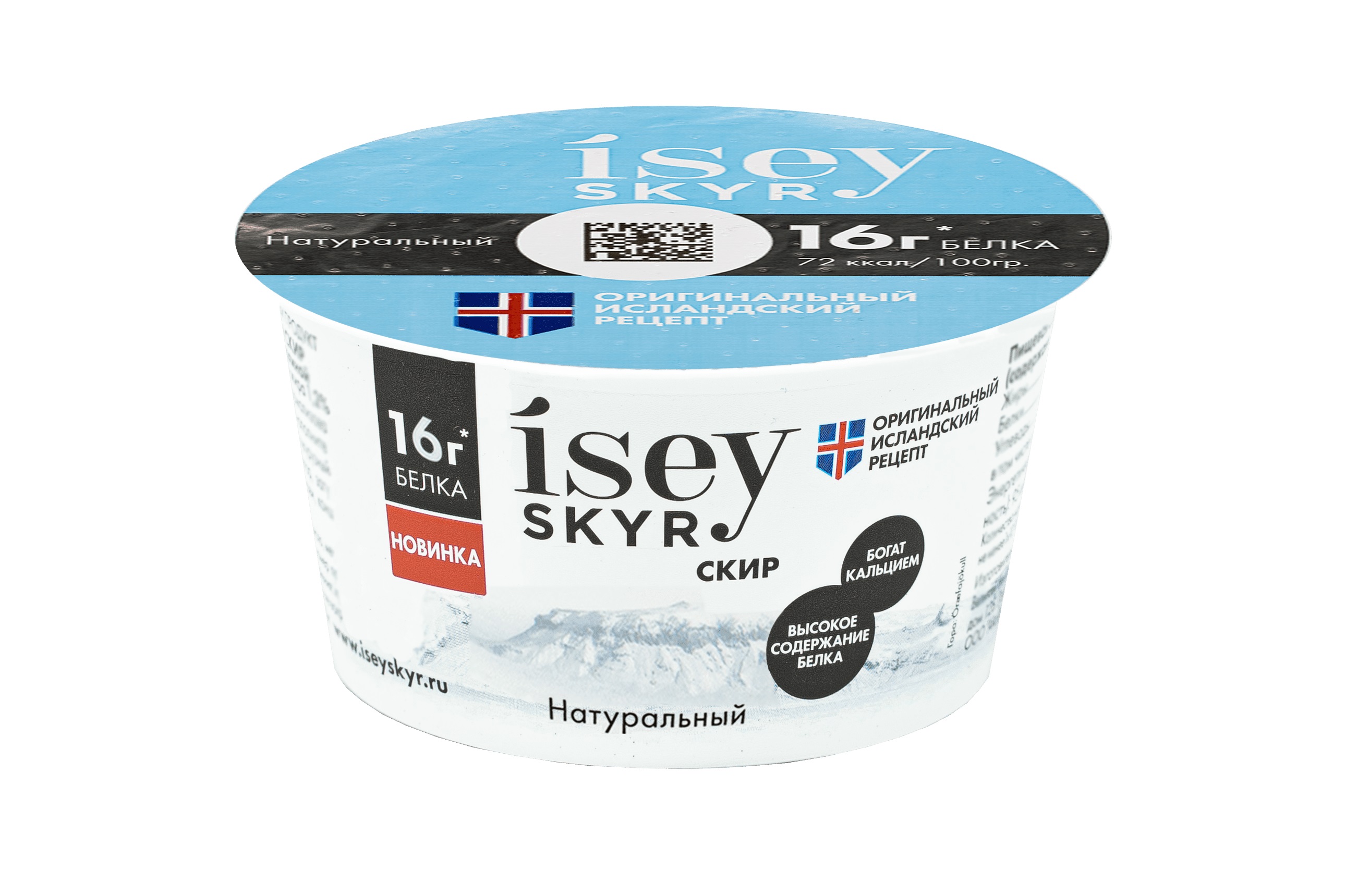Национальный исландский кисломолочный продукт. Отдельная молочная категория - Скир. Отличительной особенностью скира является большое содержание белка, малое содержание калорий, нежная кремовая и плотная структура при 1,5 % жирности, а так же сливочный вкус без, присущих другим кисломолочным продуктам, кислинки Предназначен для использования в готовом виде для употребления, также используется в качестве заправок в салаты, приготовления низкокалорийных десертов, выпечек, соусов. Состав: Молоко нормализованное, закваска Icelandic SKYR. Пищевая ценность на 100 гр. продукта: жиры - 1,5 г; белки - 11,0 г; углеводы - 3,7 г, 72ккал/305 кДж