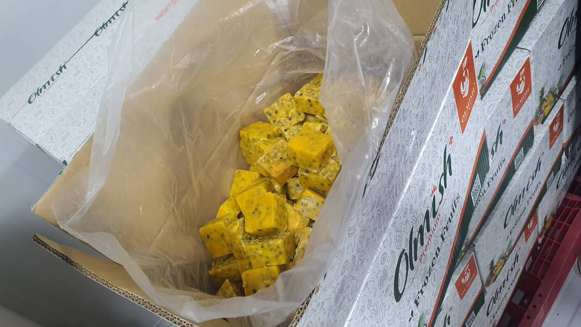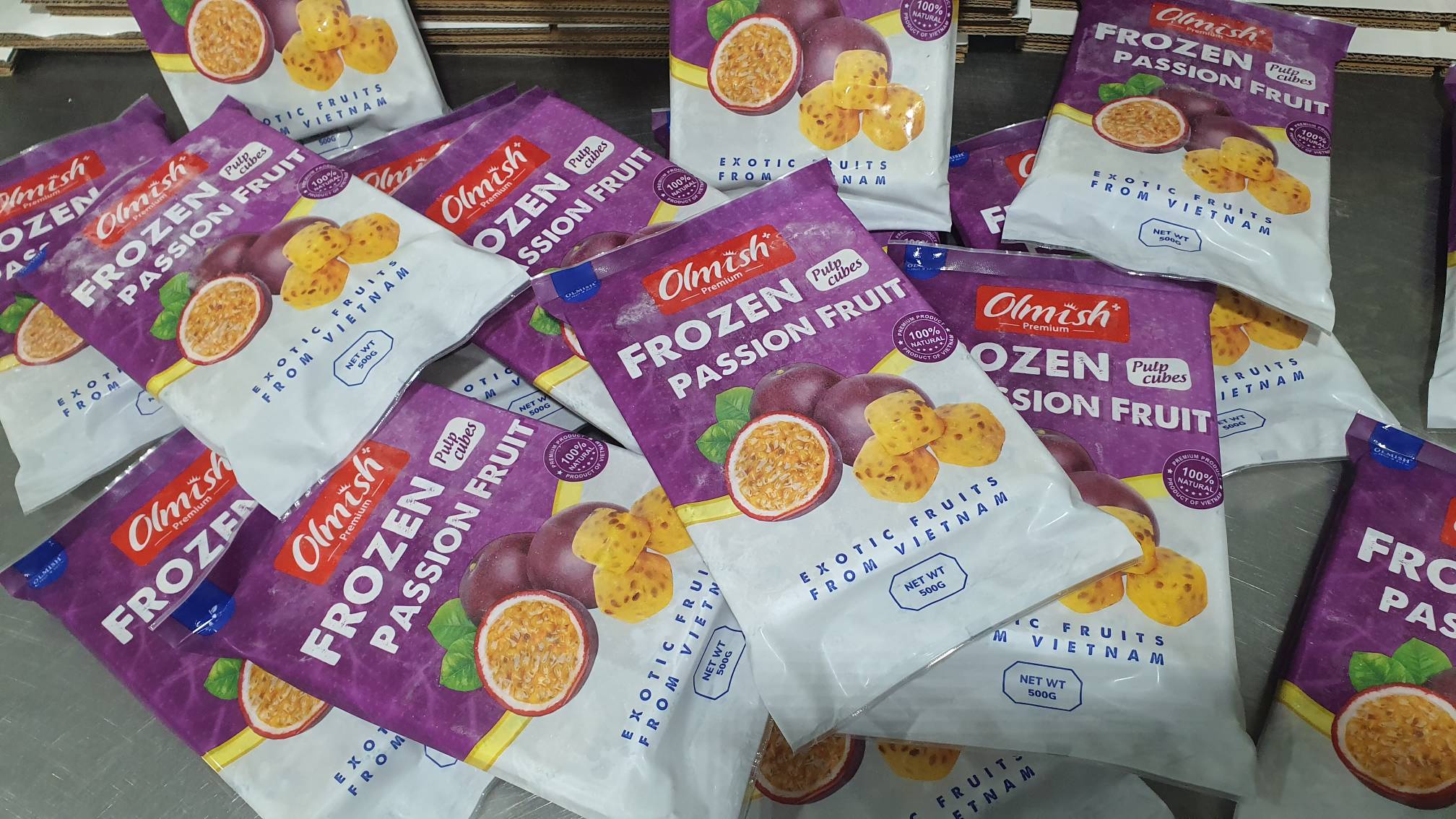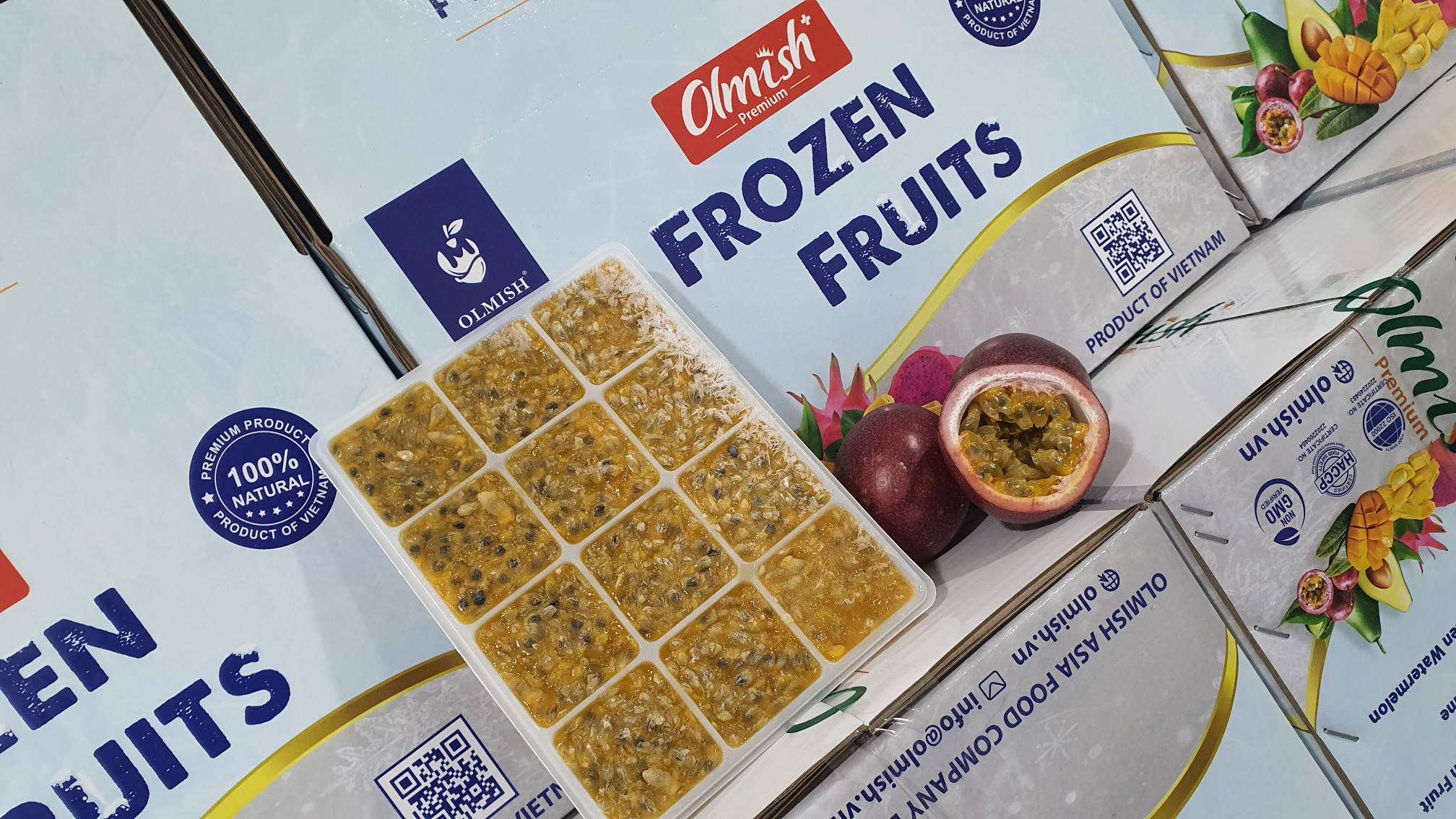 Наша компания OLMISH ASIA FOOD CO.LTD является производителем и экспортером продукции из Вьетнама. Изготавливаем заморозку из свежих фруктов и овощей. Предлагаем рассмотреть возможность закупки замороженной маракуйи пюре в кубиках, упаковка в брендовый пакет. Также изготавливаем пюре кубик без семечки на подложке, маракуйя половинки, пюре кубик навалом в пакетах.