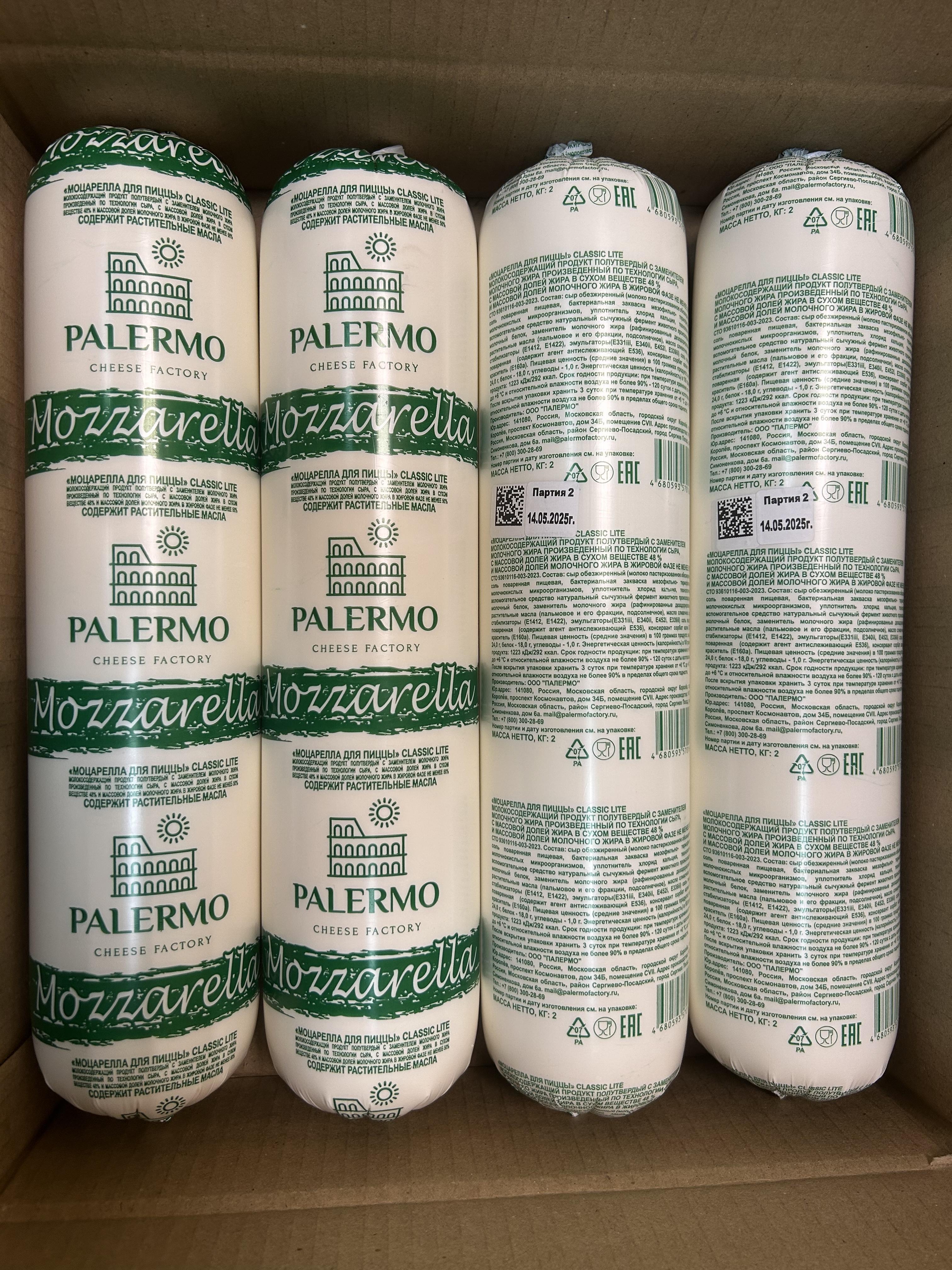 Молокосодержащийпродукт «Моцарелла для пиццы» CLASSIC LITE полутвердый с массовой долей жира в сухом веществе 48 % и массовой долей молочного жира в жировой фазе не менее 50%