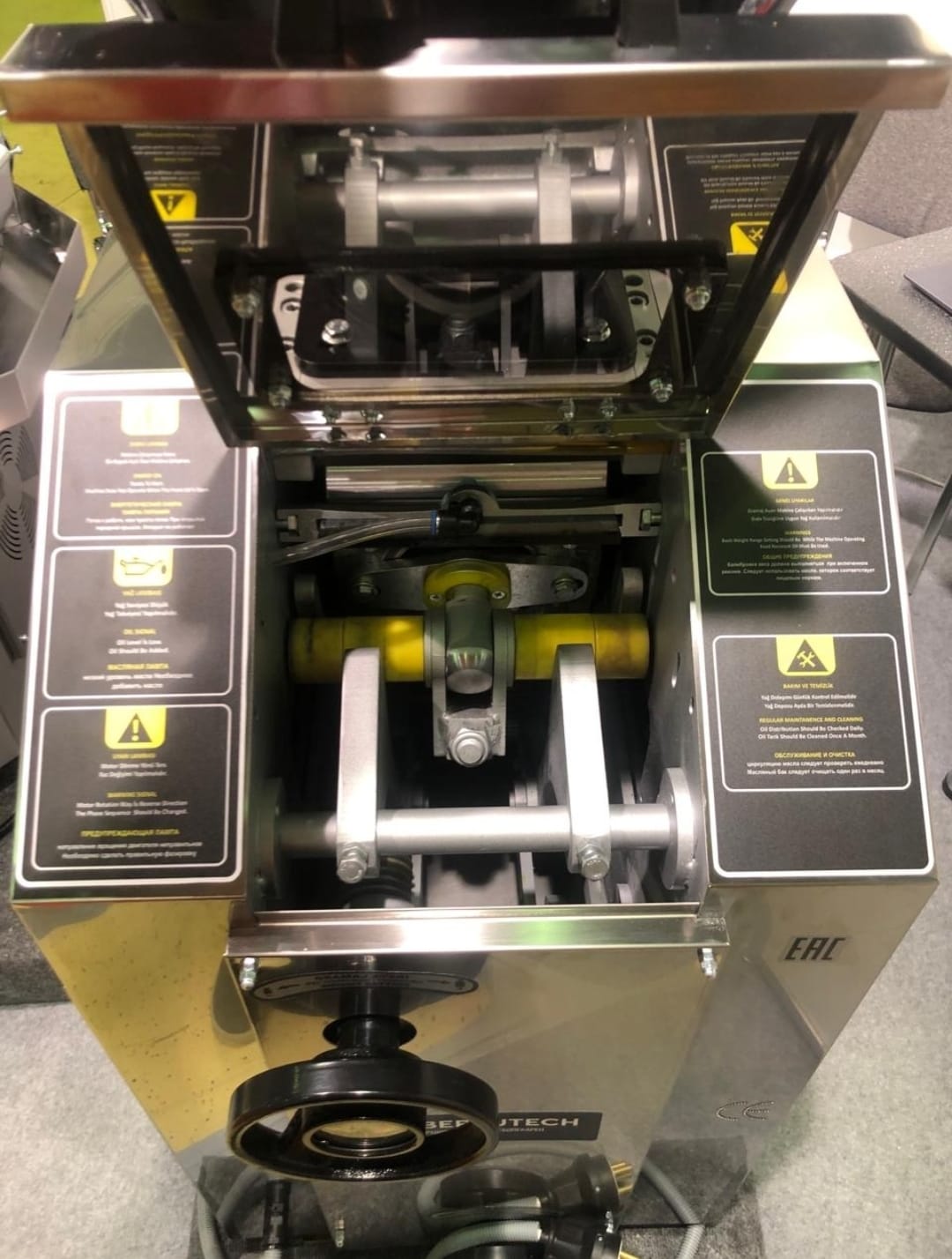 Все поверхности деталей оборудования смазываются маслом, годным для пищевой продукции.