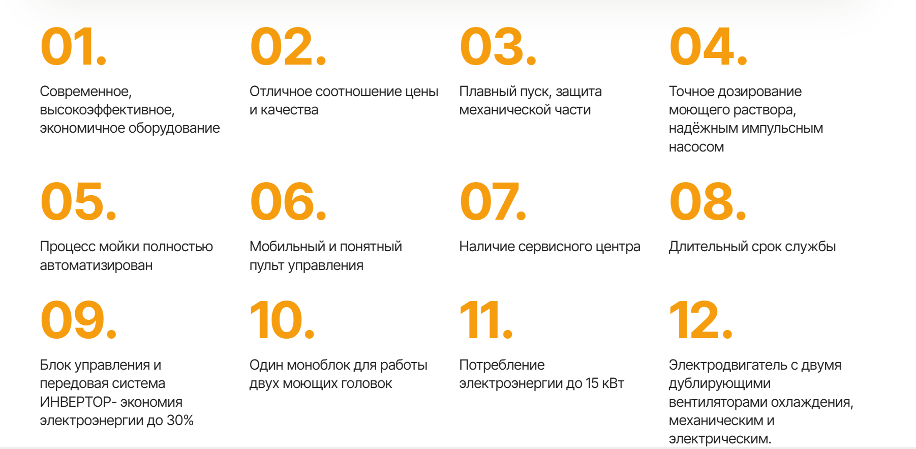 • Eстановка моет двумя вращающимися головками, одновременно или раздельно, независимая работа трёх насосов, включая дополнительный.