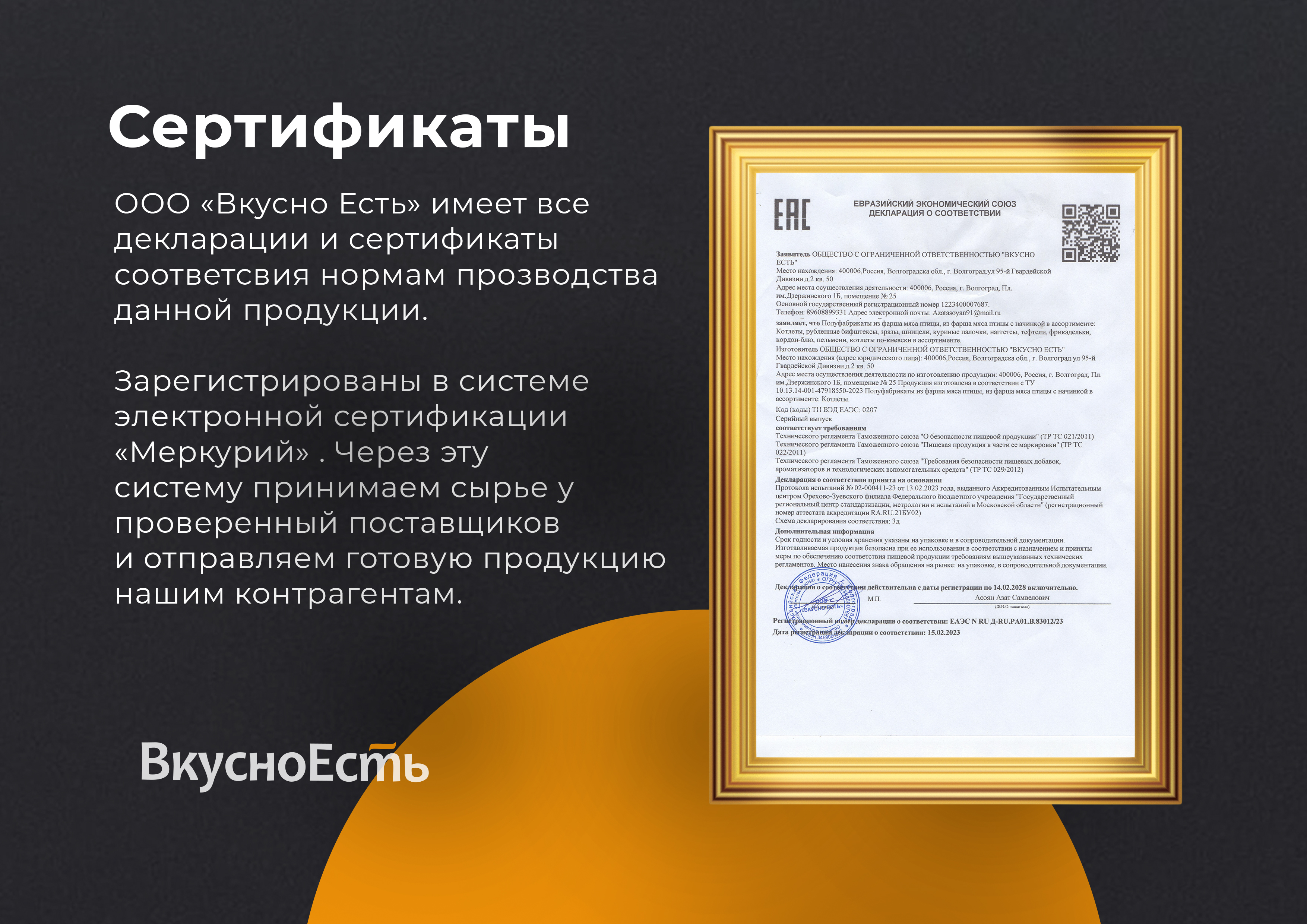 ООО «Вкусно Есть» - российский производитель полуфабрикатов из мяса птицы. В основном специализируется на производстве котлет по-киевски.